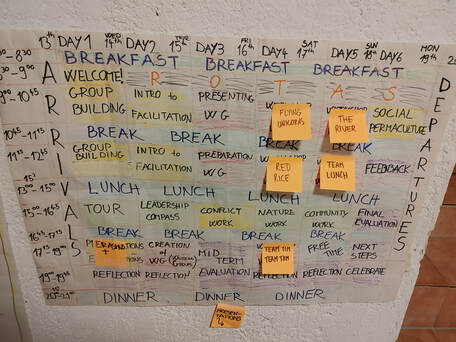 On a very practical level the training was built in 2 parts. The first part was where we were given many facilitation tools through lectures, practises, games. The first days we were sorting out the energies in the room for ourselves, we were discussing what makes a good leader, we learned about social rank and art of facilitation. Then we went into creating working groups and were preparing our own facilitated workshops. And the second part consisted of us carrying out the prepared workshops and getting feedback on how they went.